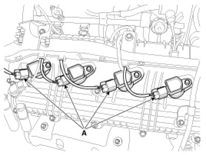 1. Disconnect the ignition coil connectors (A).