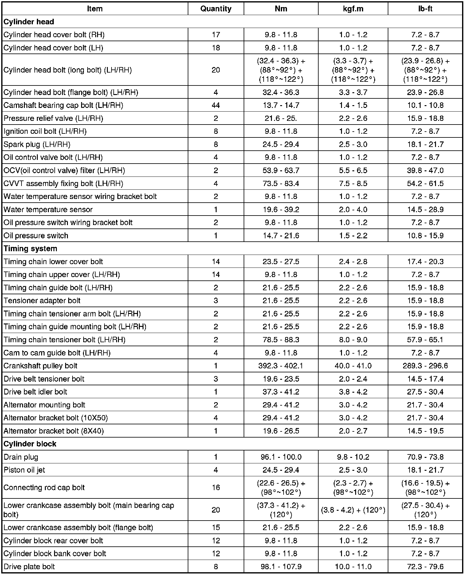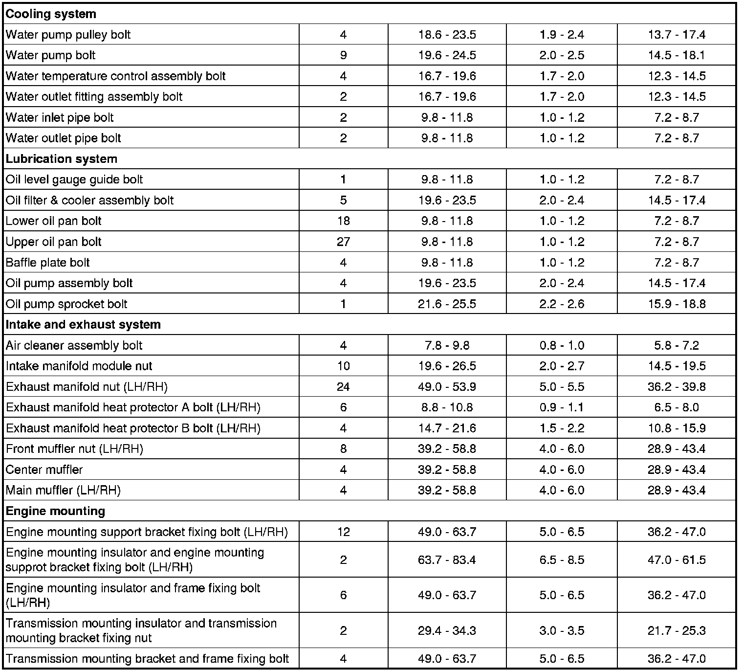 Tightening Torques