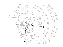 Remove the split pin (A) then remove castle nut (B) and washer from the front hub under applying the brake.