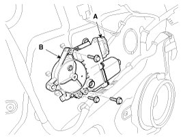 3. Loosen the mounting bolts, then remove the power window motor (B).