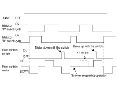 (1) When, rear curtain motor IGN ON, rear curtain UP and shift lever "R" position, rear curtain motor linked with the signal makes auto down.