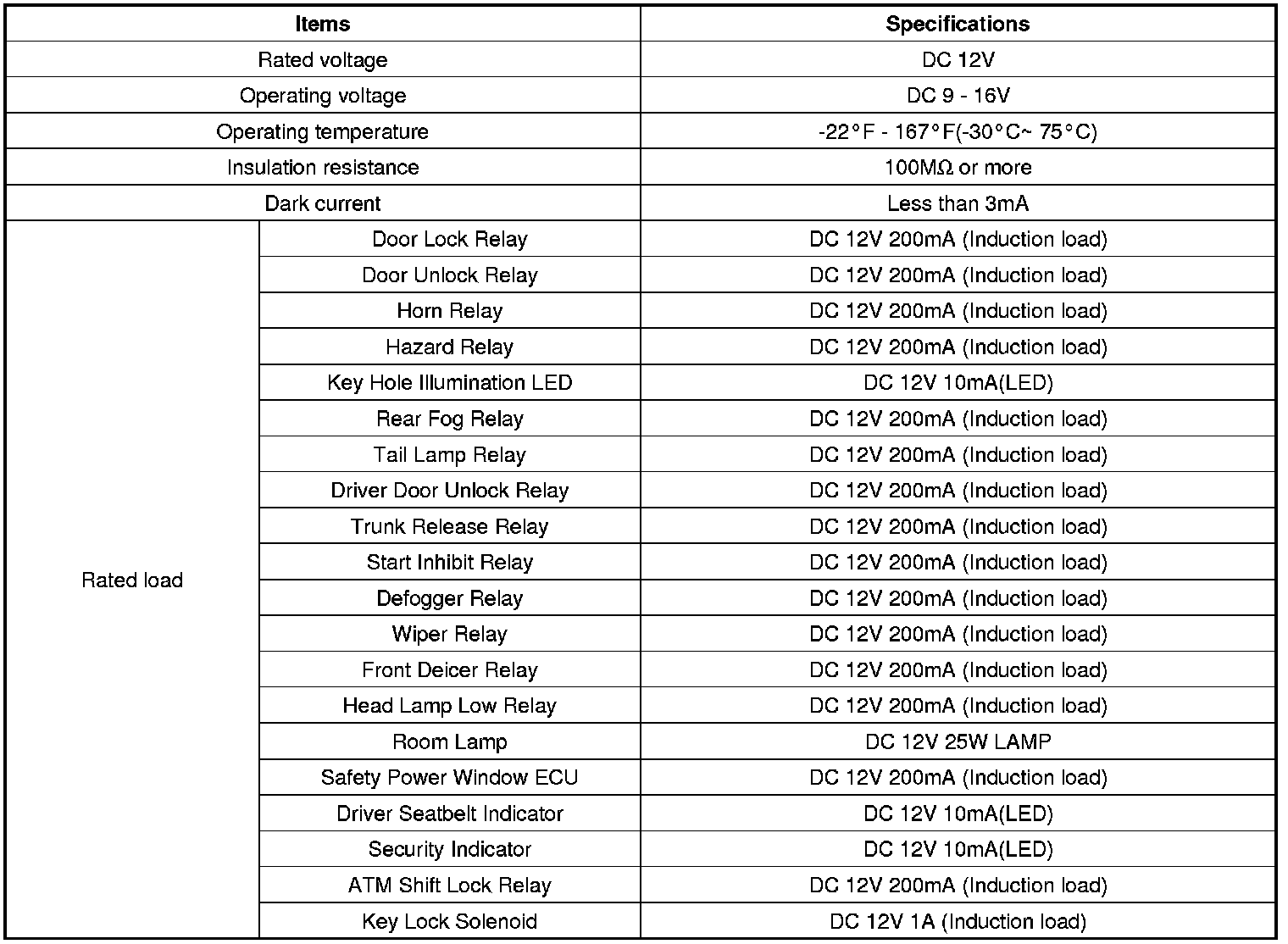 Electrical Specifications