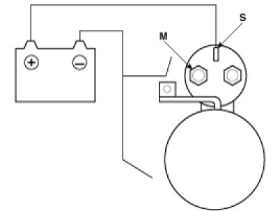If the pinion does not retract, the hold-in coil is working properly. To avoid damaging the starter, do not leave the battery connected for more than 10 seconds.