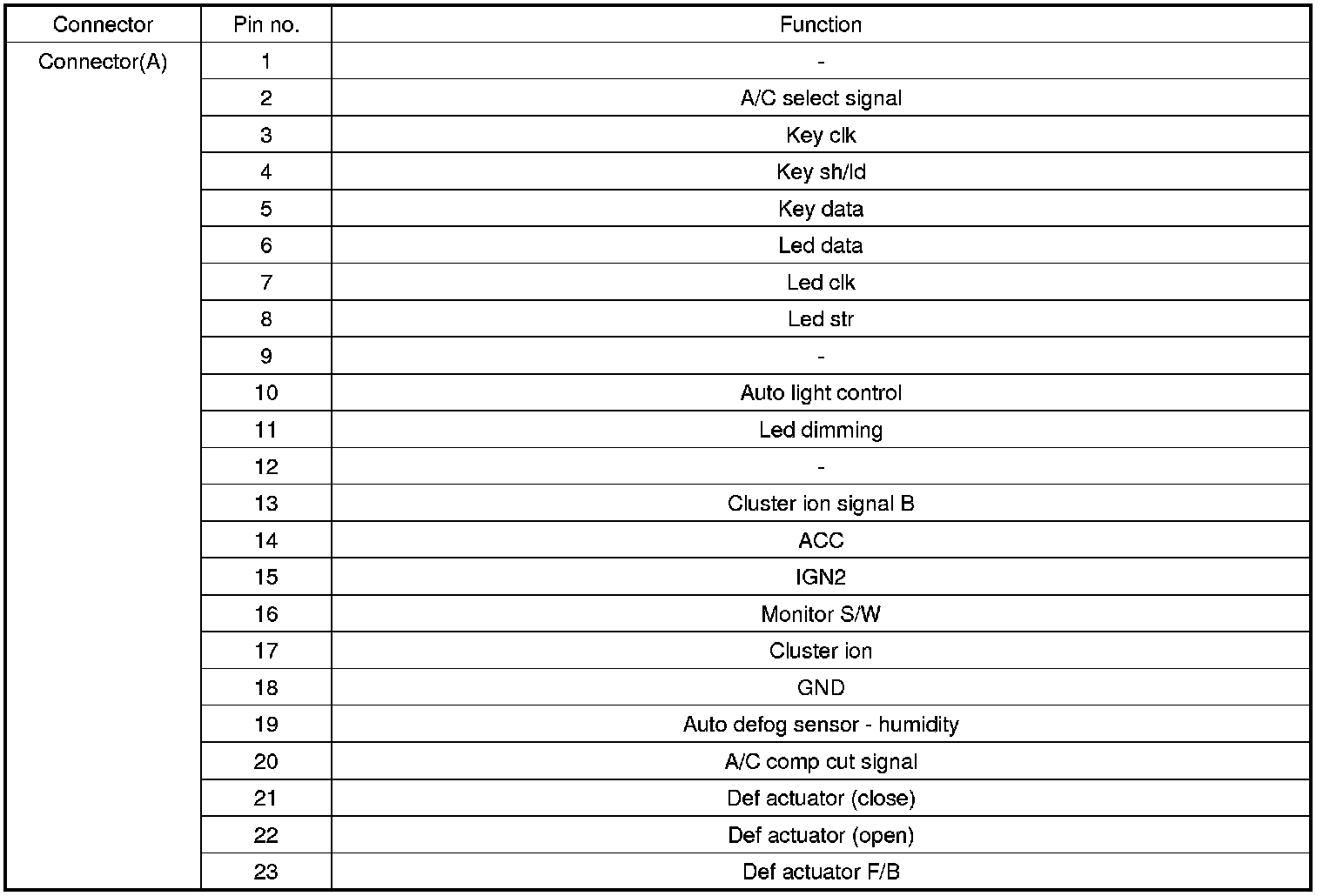 Connector pin function