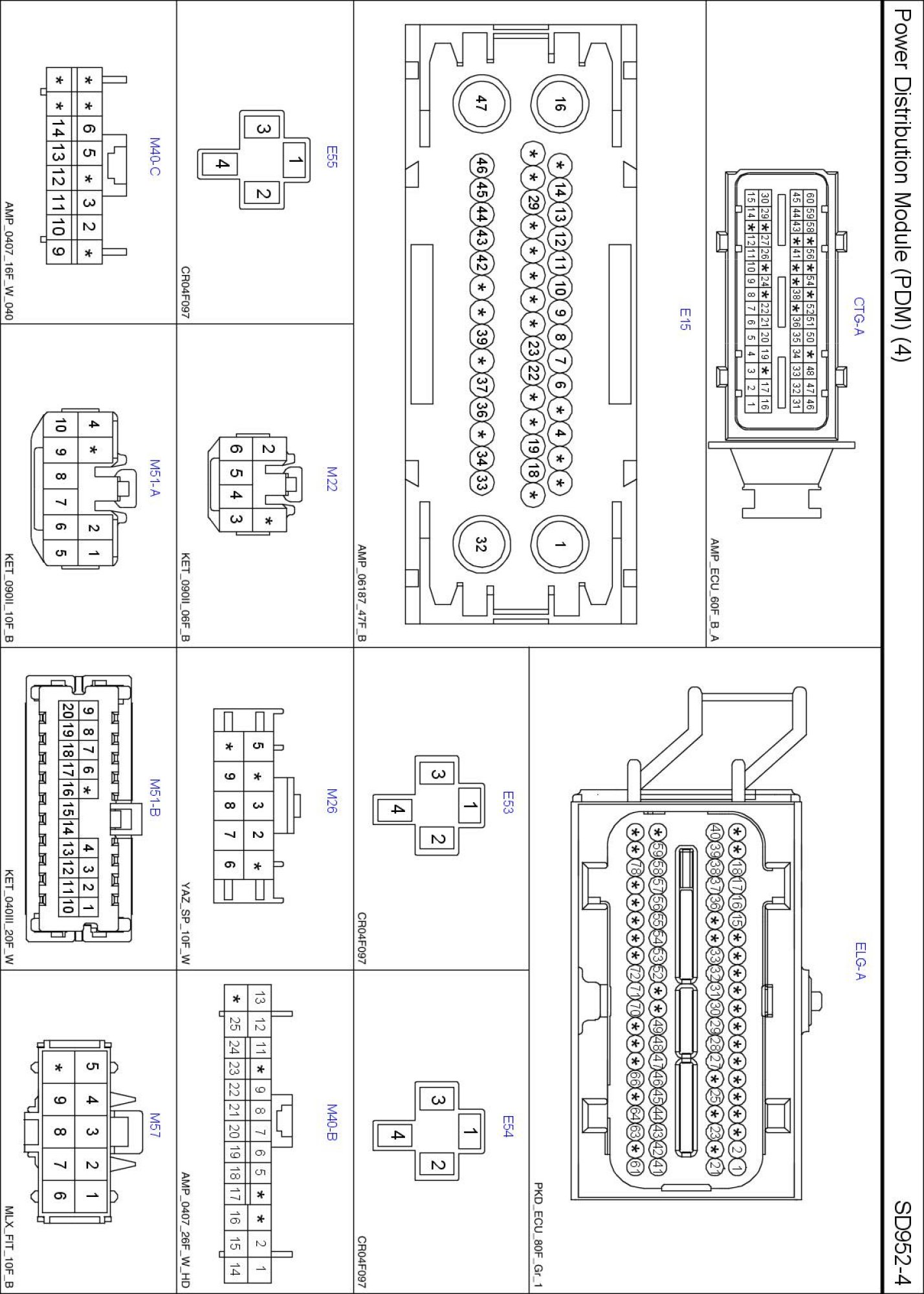 Power Distribution Module (PDM) (4) Connector Pin Outs: