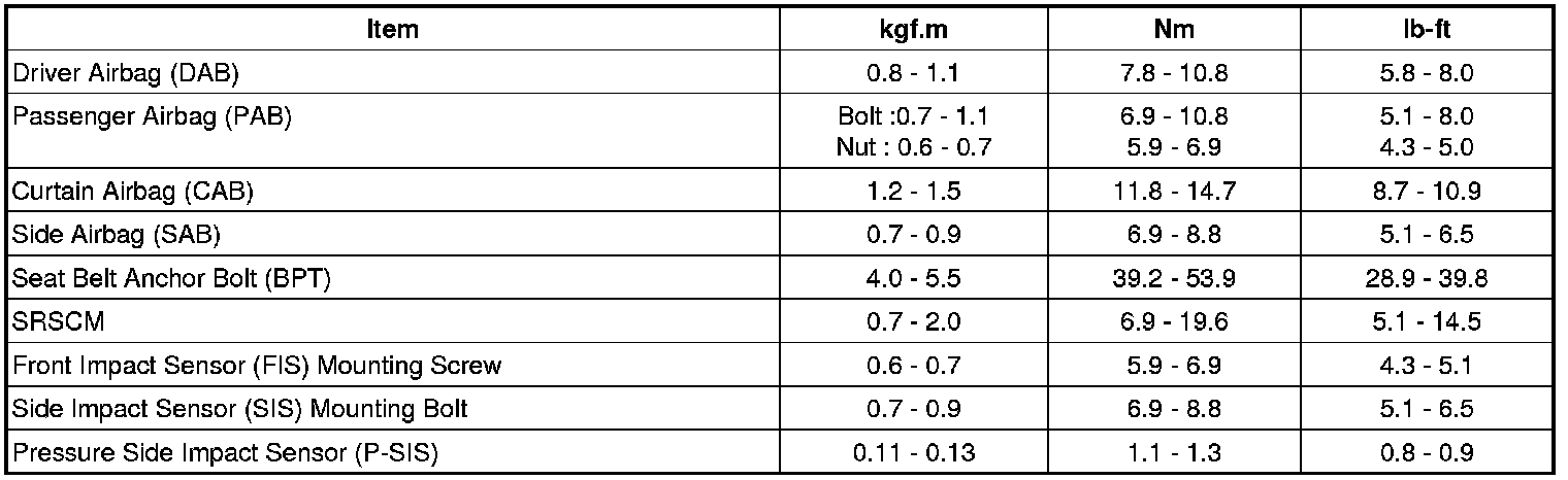 Tightening Torques