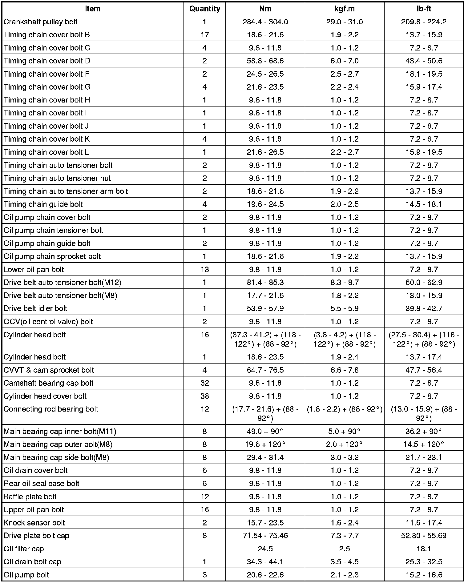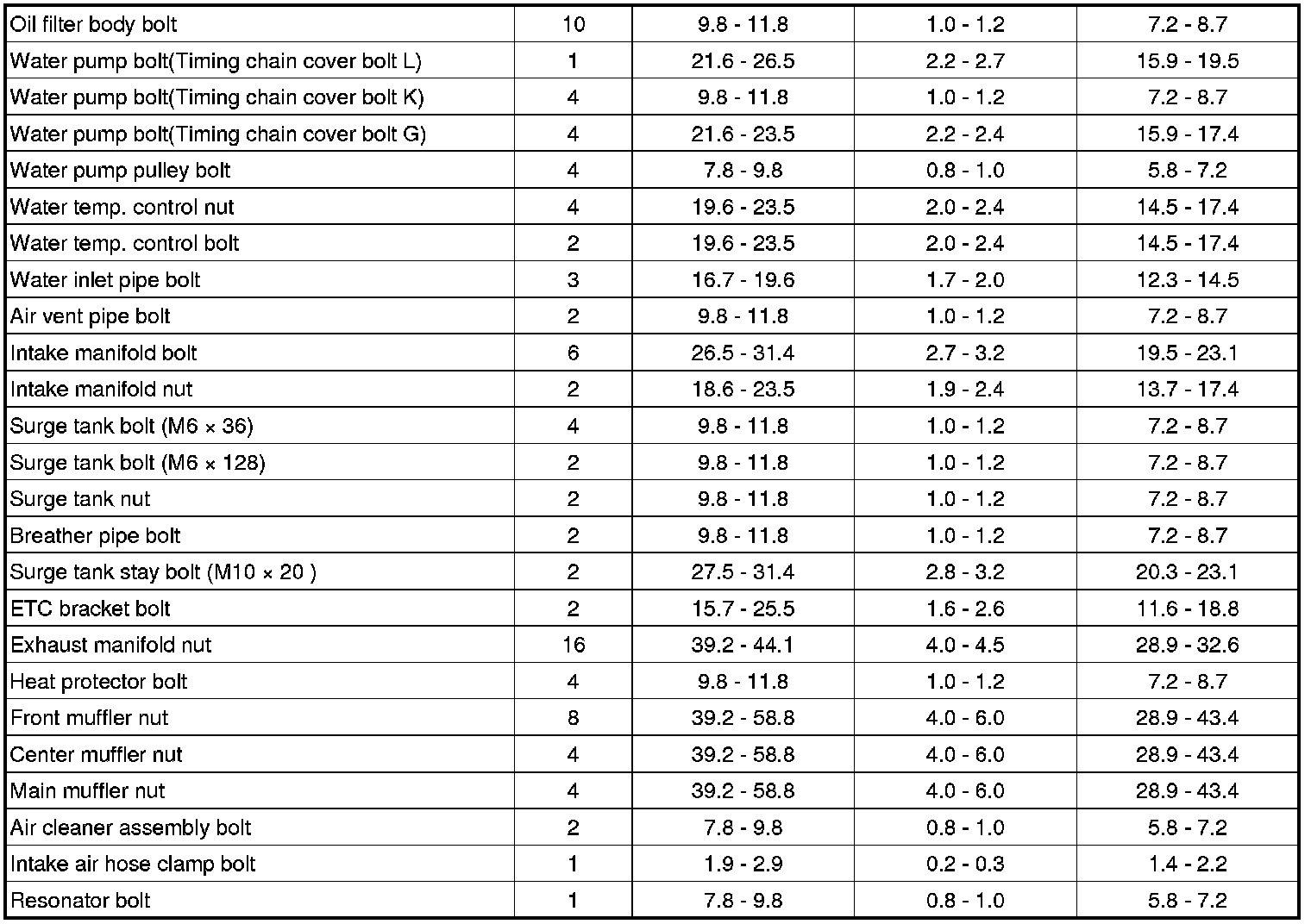 Tightening Torques