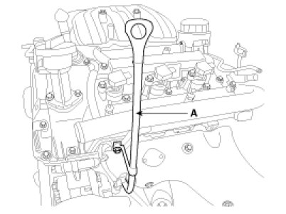 3. Remove the oil level gauge tube (A).