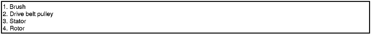 The main components of the alternator are the rotor, stator, rectifier, capacitor, brushes, bearings and V-ribbed belt pulley. The brush holder contains a built-in electronic voltage regulator.