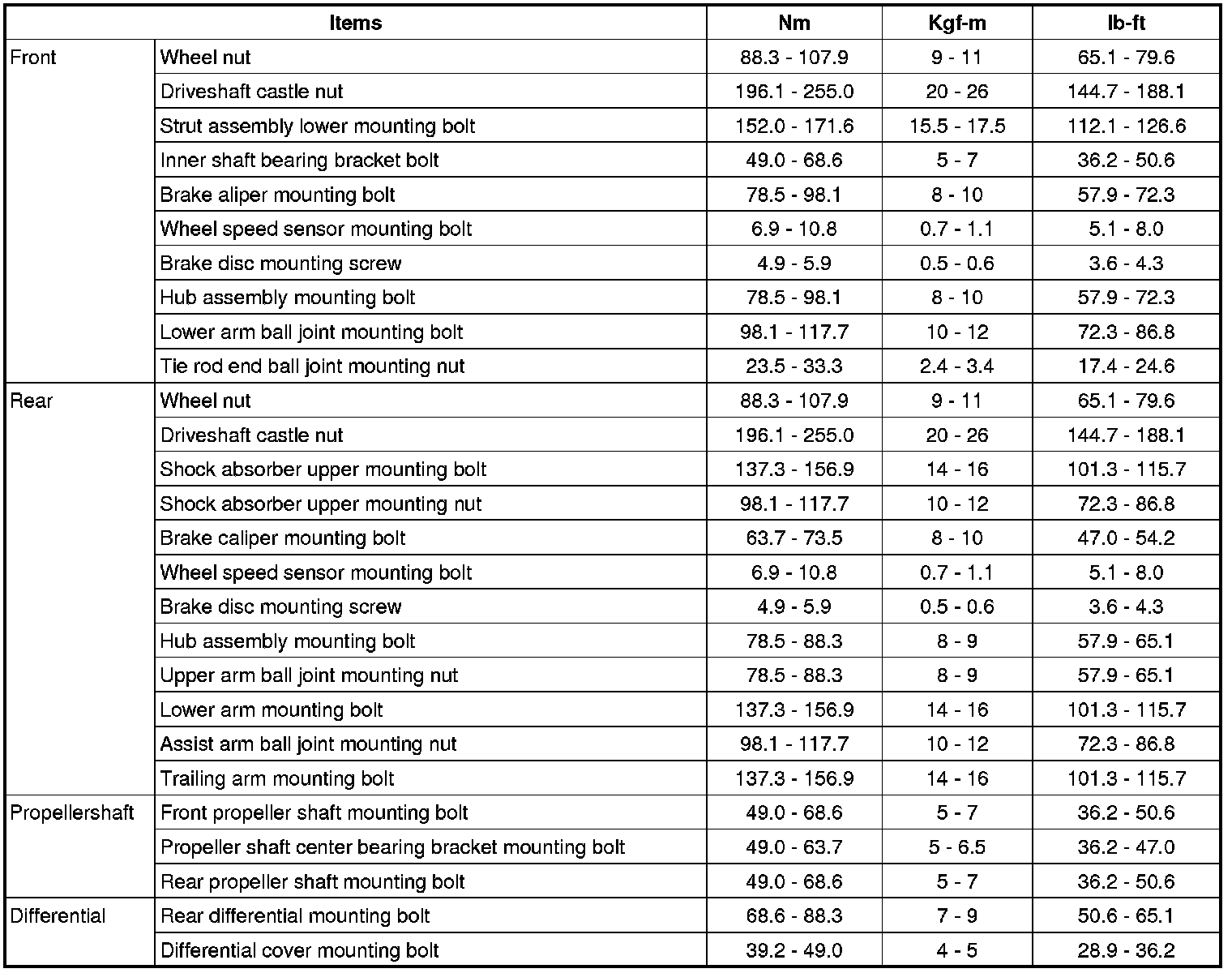 Tightening Torques