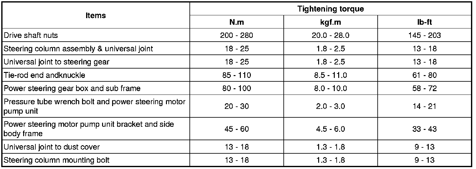 Tightening Torques