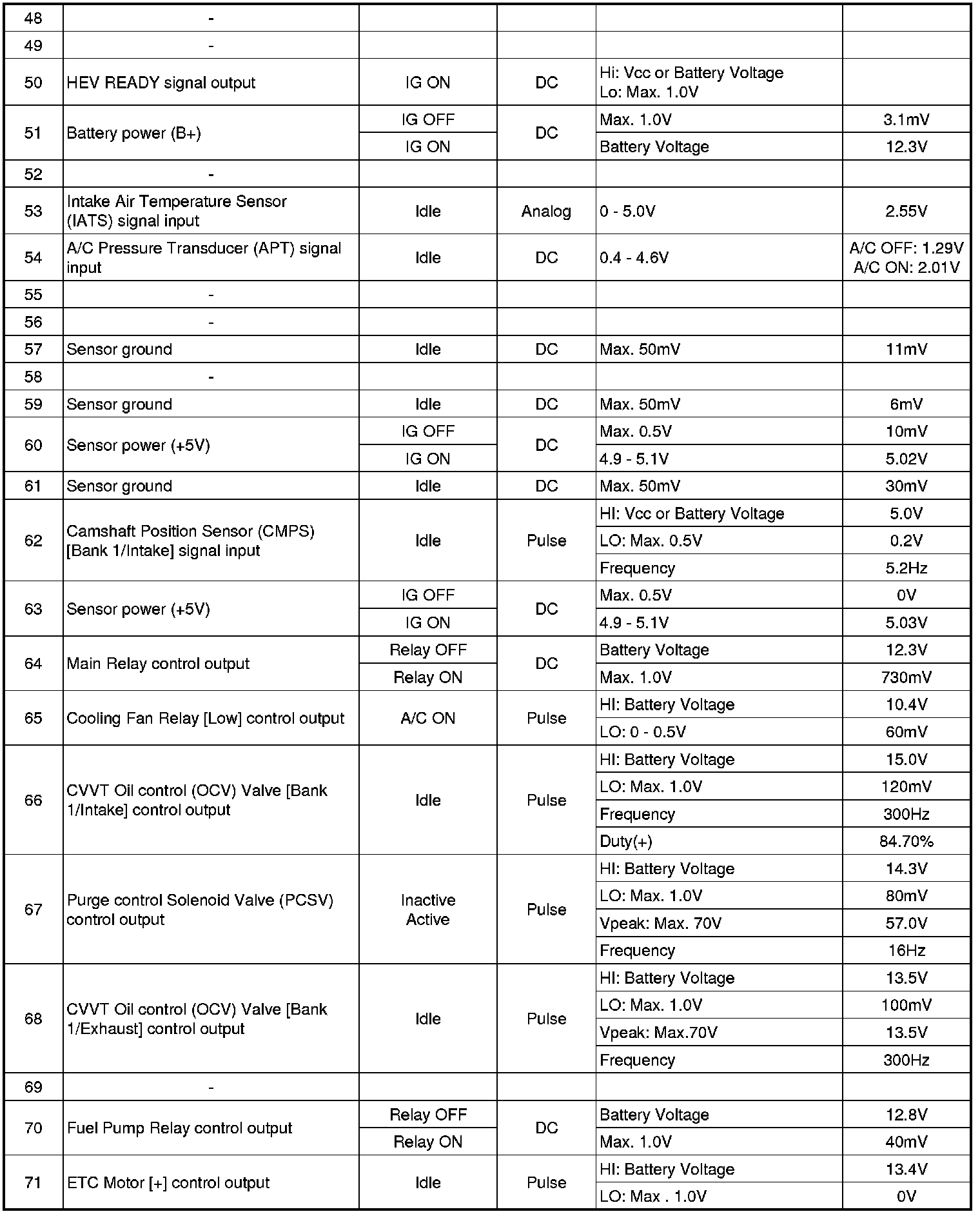 Engine related parameters will only have valid values when the engine is requested to run by the HPCU (HEV control module). When engine does not run values will be invalid.