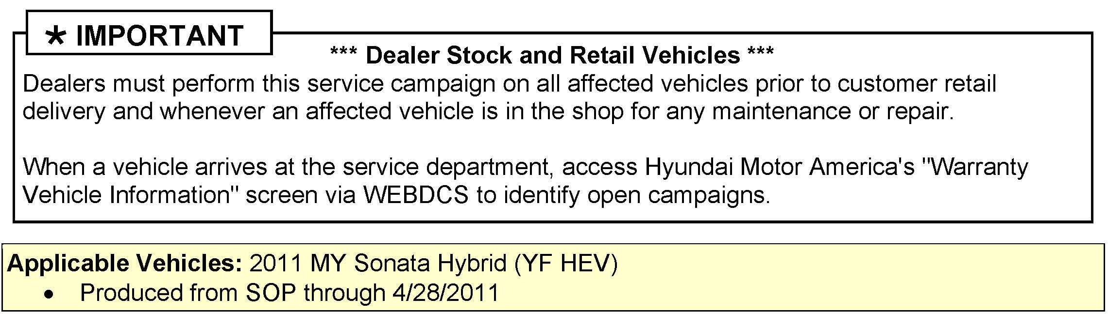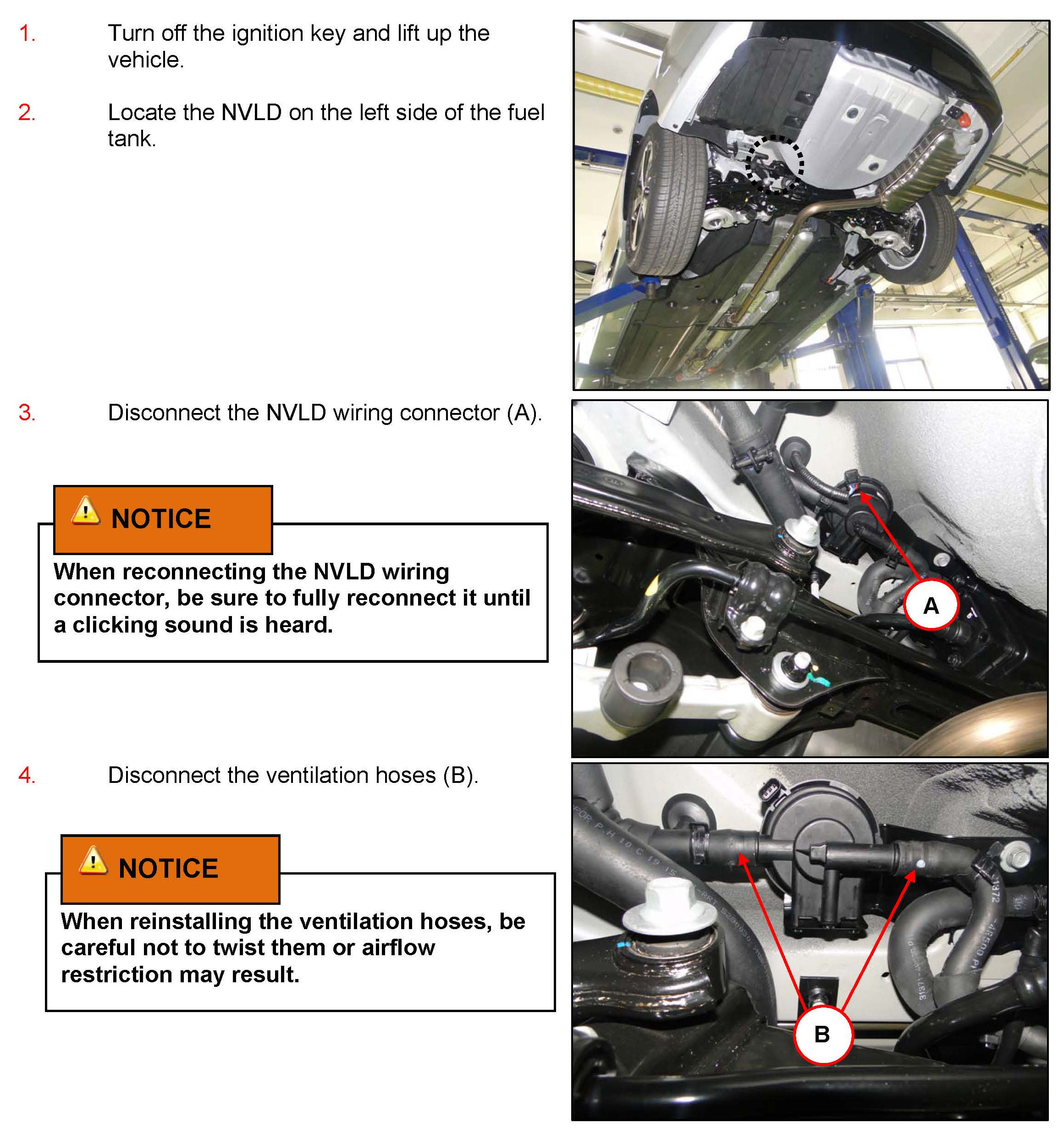 For 2011 Sonata Hybrid (YF HEV) vehicles, this bulletin provides a procedure to inspect the NVLD (Natural Vacuum Leakage Detection - Pressure Sensor Assembly) and replace it, it necessary, with a revised part. In addition, it provides a procedure to update the ECM.