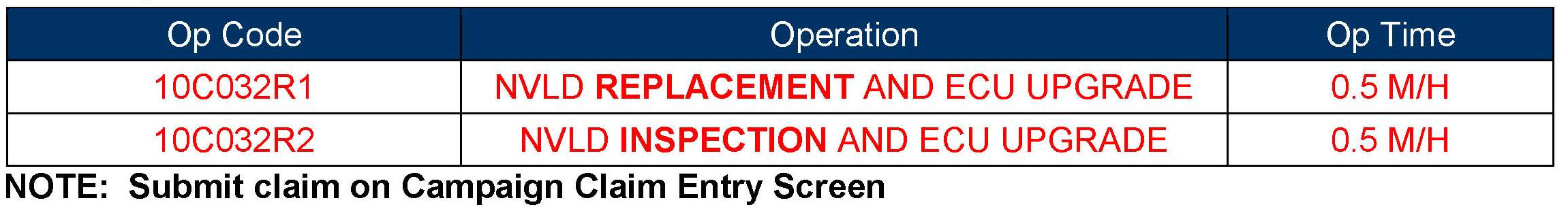 NVLD INSPECTION/REPLACEMENT AND ECM UPDATE (SERVICE CAMPAIGN TF9)