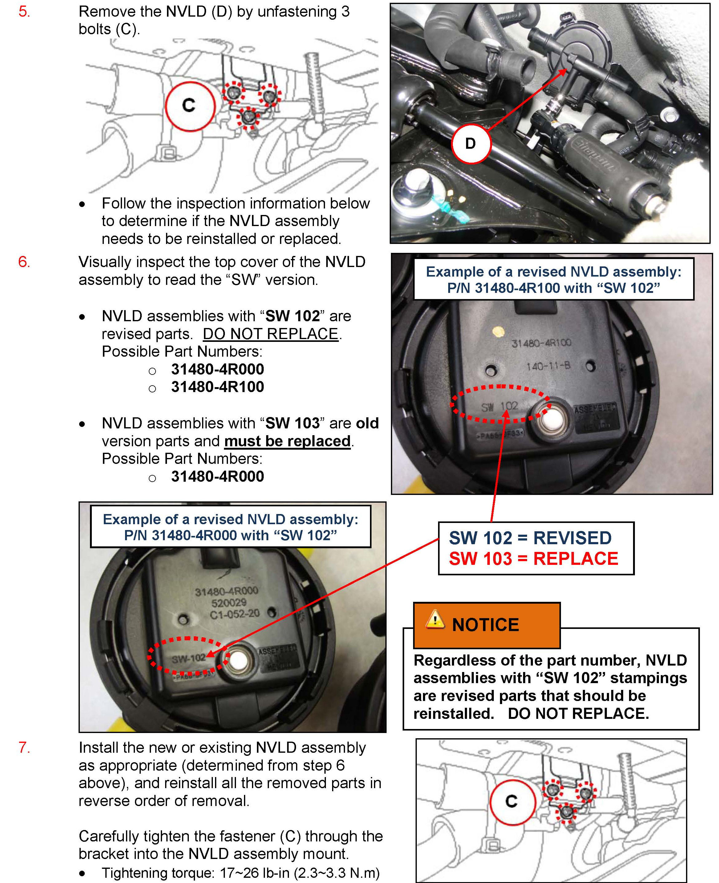 NVLD INSPECTION/REPLACEMENT PROCEDURE
