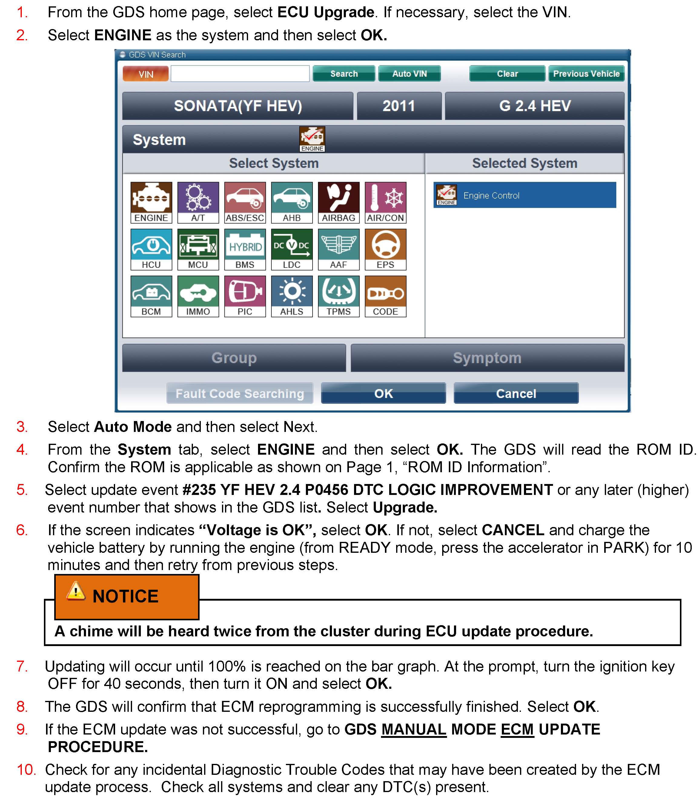 GDS AUTO MODE ECM UPDATE PROCEDURE