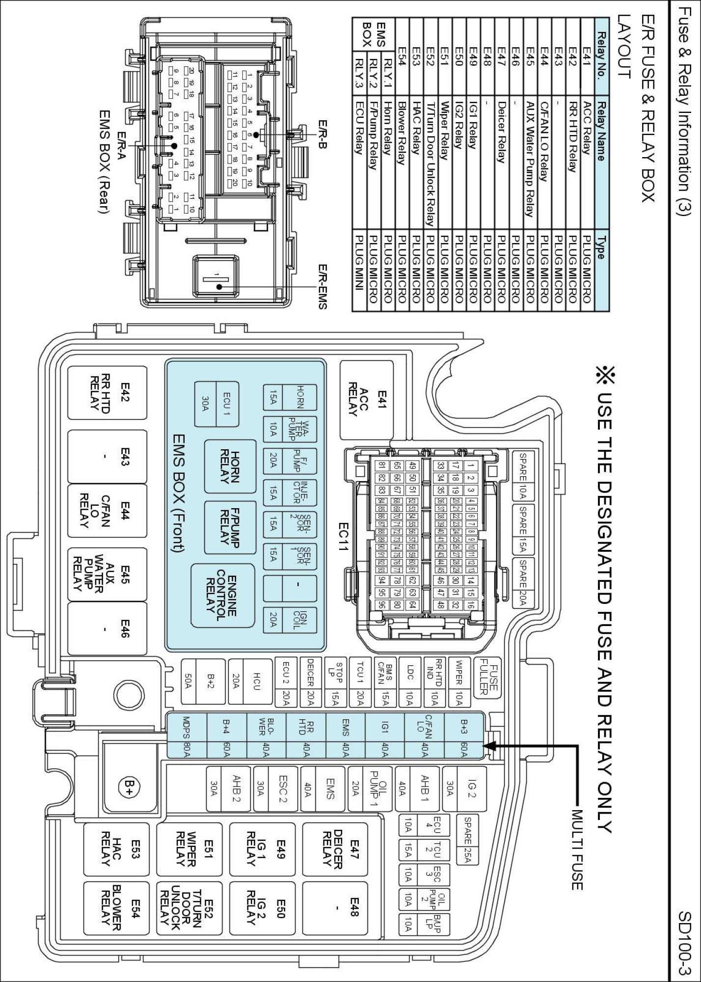 E/R Fuse & Relay Box Circuit Details: