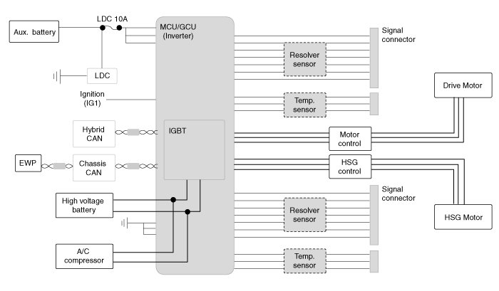 A high-capacity power module is applied to control 2 primary motors using high voltage. The power module is composed of a high-speed switching insulated gate bipolar transistor (IGBT) and a diode circuit. The high voltage battery capacity is about 270V, but to ensure stability and reliability the power module uses high capacity power with a maximum voltage of 650V.