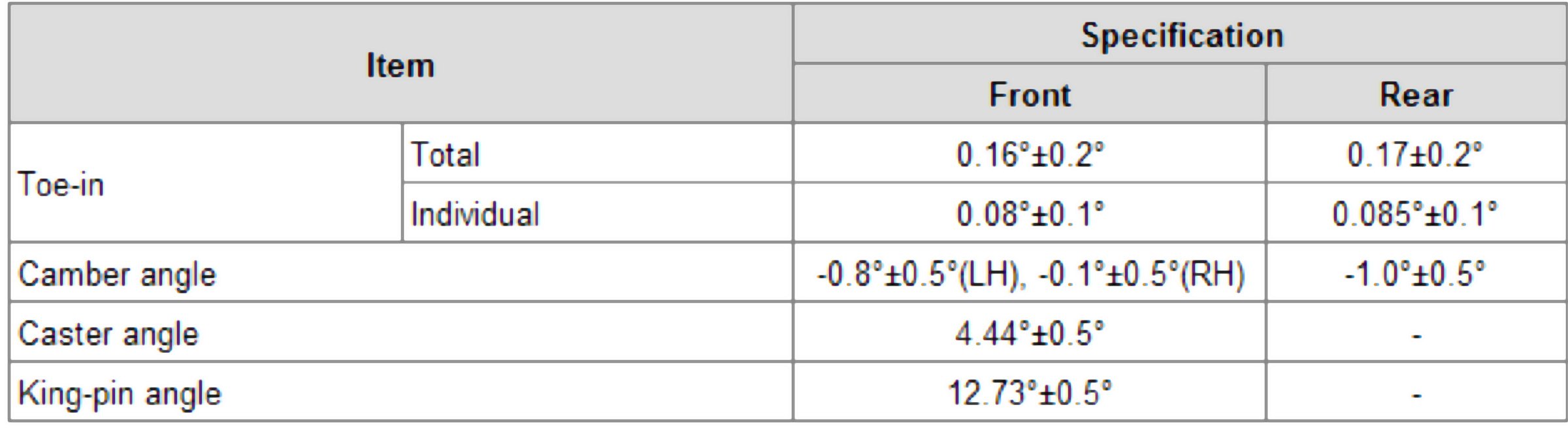 Wheel Alignment Specifications