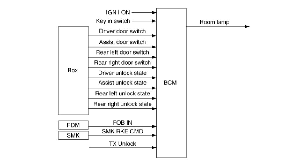 - IGN1 off the door (Trunk excluded) will be lit to open the room lamp.
