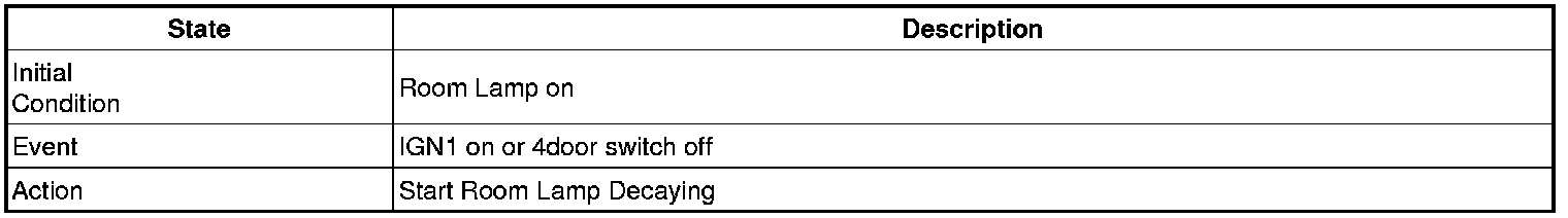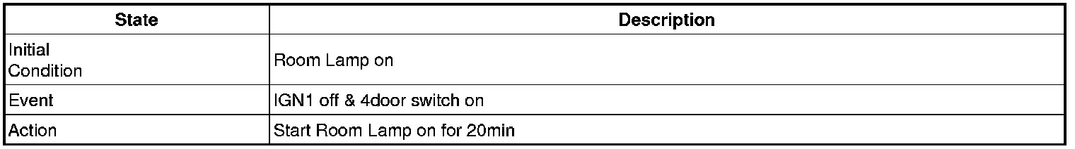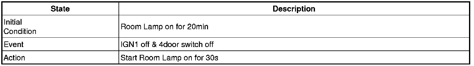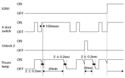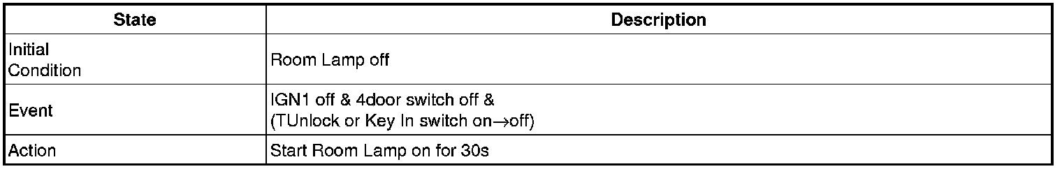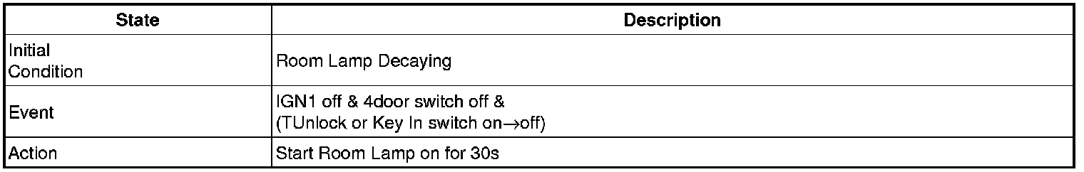 - 4 Door in closed IGN1 off & (Key in -> Key out): 30-second delay will be lights out.