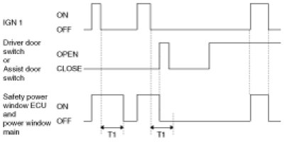 4. IGN1 OFF when the Safety Power window Enable and power window main output is OFF at driver door switch or Assist door switch OPEN.