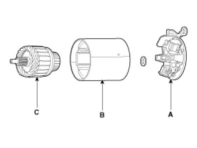 4. Remove the brush holder assembly (A), yoke (B) and armature (C).