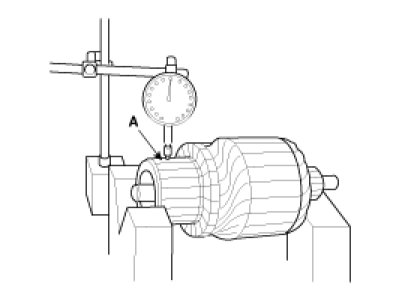 5. Measure the commutator (A) runout.