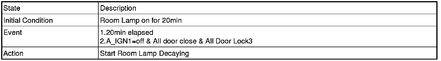 (2) In case of BAT. Connect -> disconnect, IGN1=off & Any door open , transit to Room Lamp on for 20 min Mode.