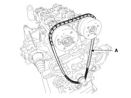 Put paint marks on the timing chain links(3 places) that meet with the timing marks of the CVVT sprockets(In, Ex : 2) and the CVVT sprocket.