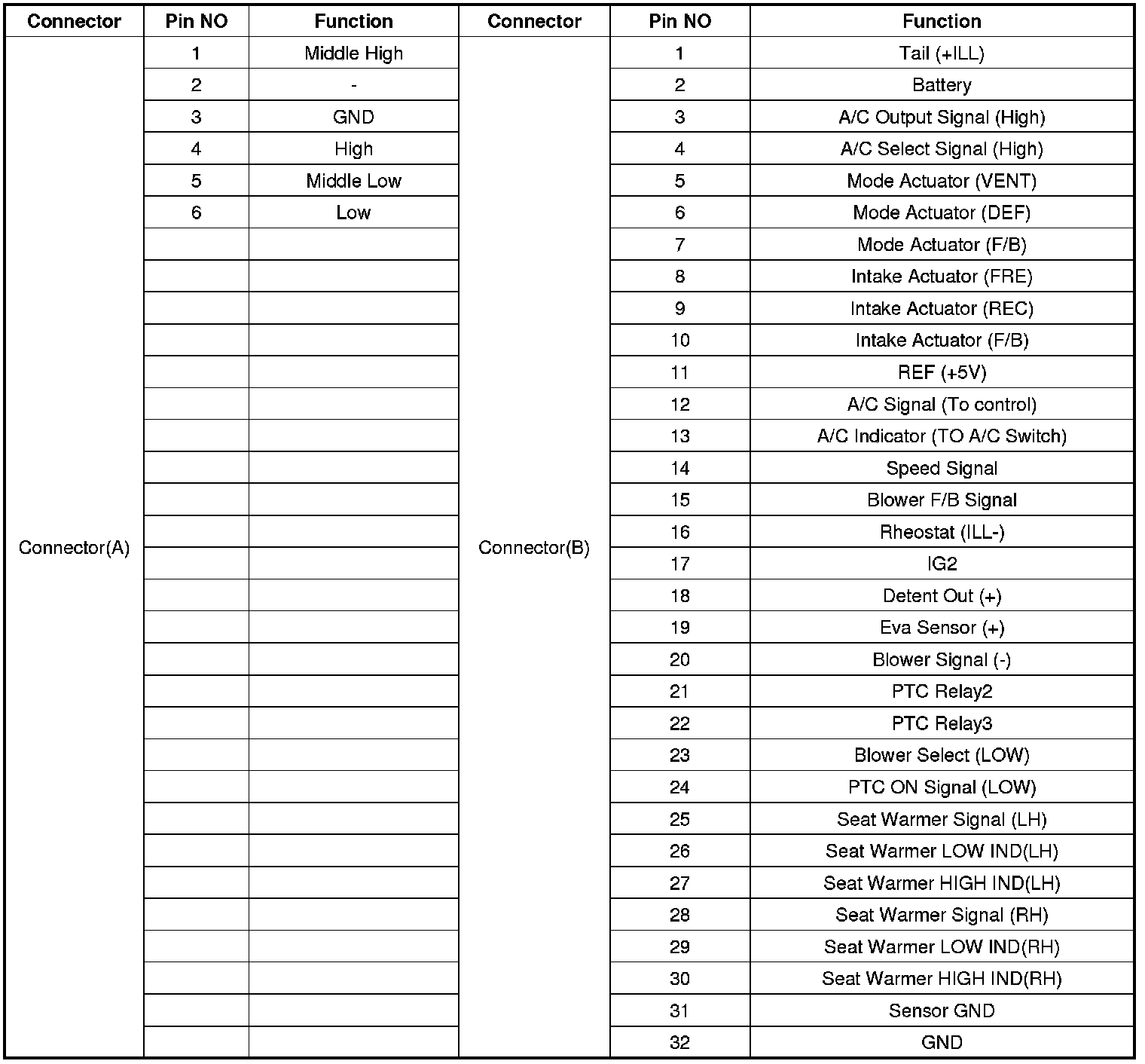 Connector pin function