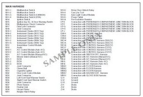 Electrical wiring connectors are classified according to the wiring parts in the Harness Layouts.