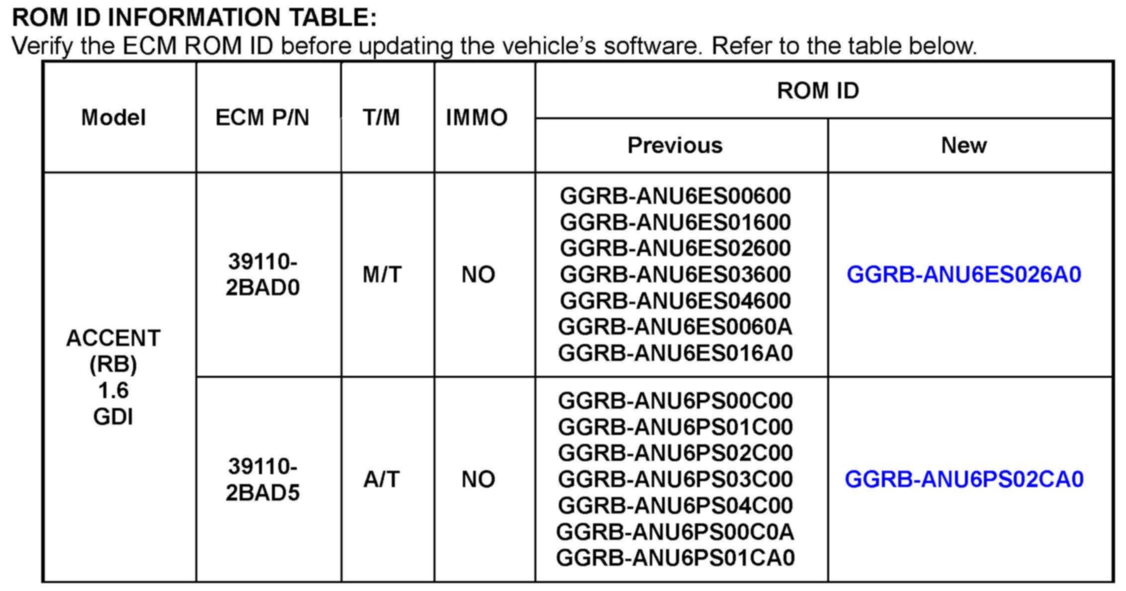 Confirm the ROM is applicable as shown at the beginning of this bulletin, "ROM ID Information".