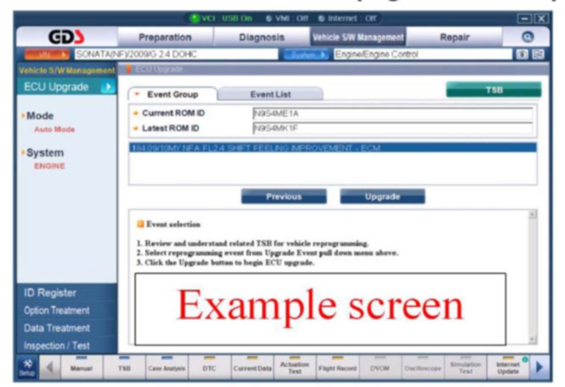 1. From the GDS home page, select ECU Upgrade. If necessary, select the VIN.