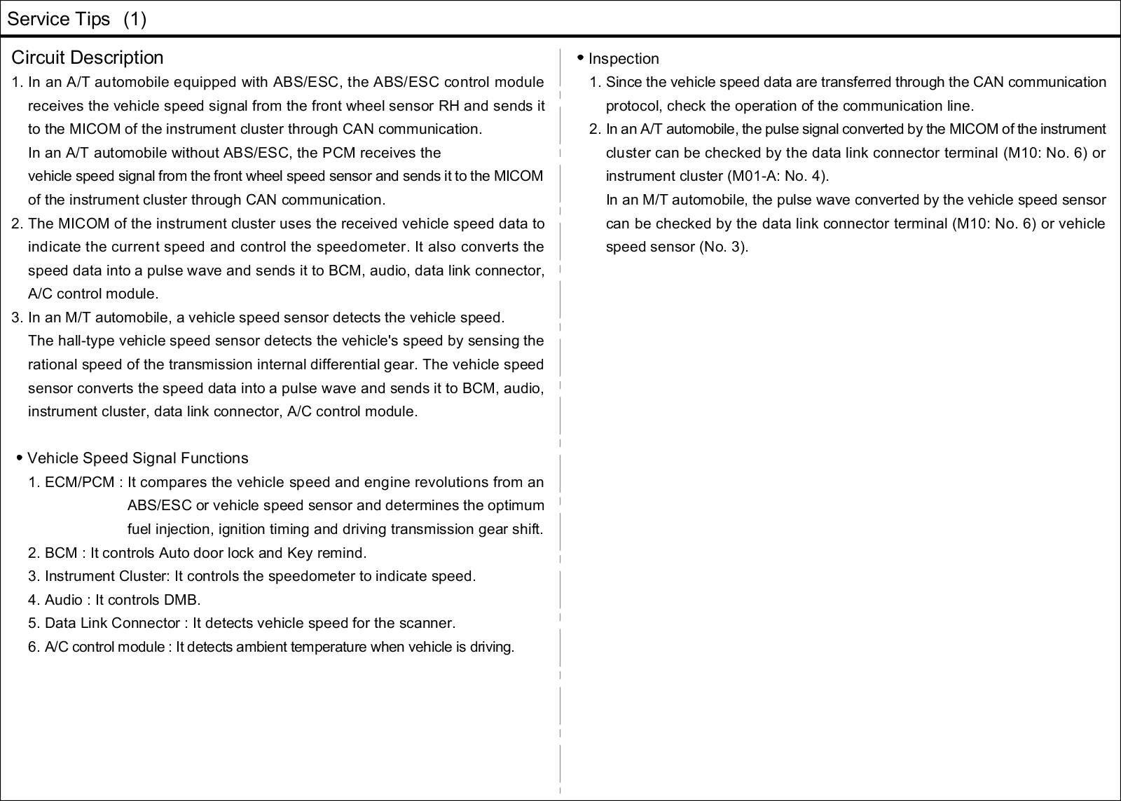 Vehicle Speed Sensor: Description and Operation