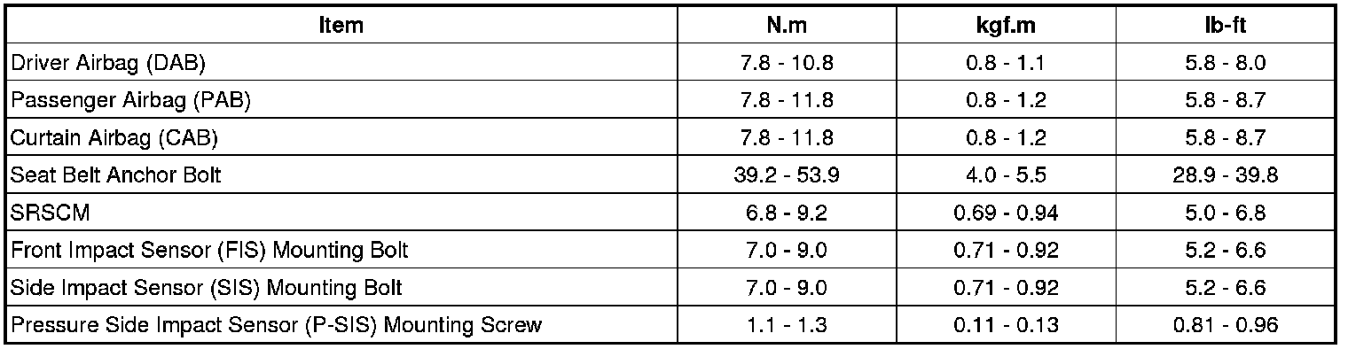 Tightening Torques