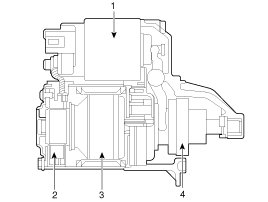The contacts close and the starter motor cranks. In order to prevent damage caused by excessive rotation of the starter armature when the engine starts, the clutch pinion gear overruns.
