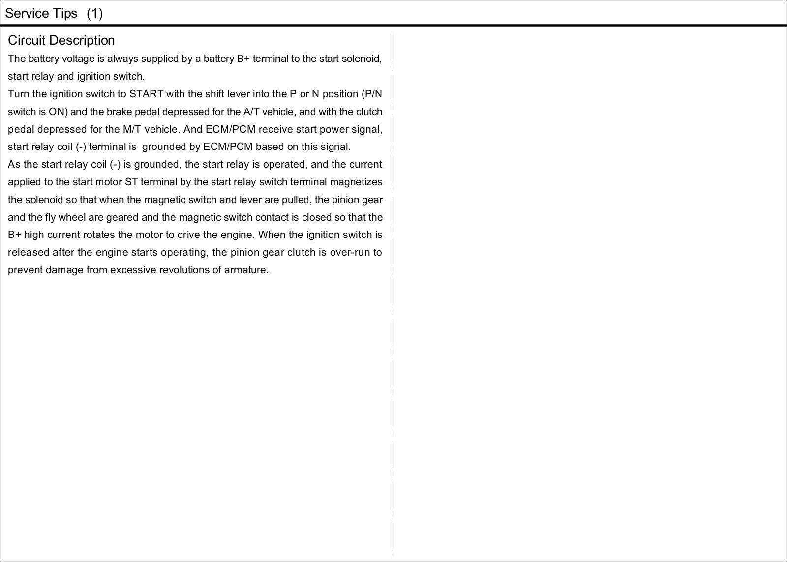 The starting system includes the battery, starter, solenoid switch, inhibitor switch (A/T), ignition switch, ignition lock switch, connection wires and the battery cable.