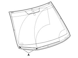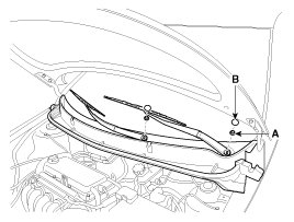 1. Loosen the windshield wiper arm nut (A) after removing a wiper cap (B).