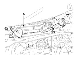 7. Remove the windshield wiper motor and linkage assembly (A) after removing 2 bolts.