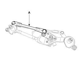 8. Hold the wiper motor crank arm and remove the upper linkage (A) from the wiper motor crank arm.