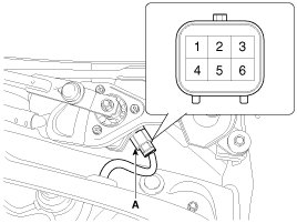6. Disconnect the wiper motor connector (A) from the wiper motor & linkage assembly.