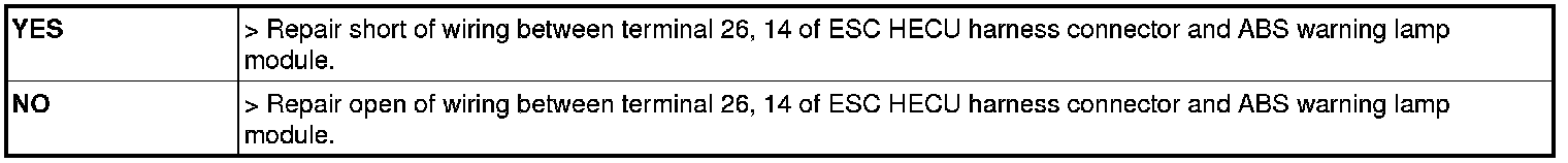 Check for continuity between terminal (M08) 34 of the cluster harness side connector and terminal 14 of ESC HECU harness side.