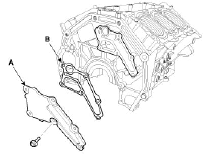 12. Remove the oil cover (A) and gasket (B).