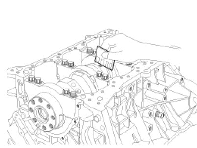 21. Remove the crankshaft main bearing cap and check oil clearance.
