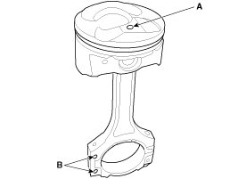 (2) The piston front mark (A) and the connecting rod front mark (B) must face the timing belt side of the engine.