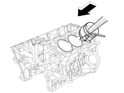 (1) Install the ring compressor, check that the bearing is securely in place, then position the piston in the cylinder, and tap it in using the wooden handle of a hammer.