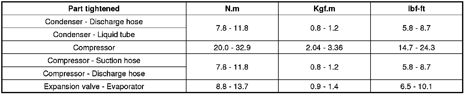 Tightening torques