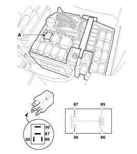 1. Remove the horn relay (A) from the engine room relay box.