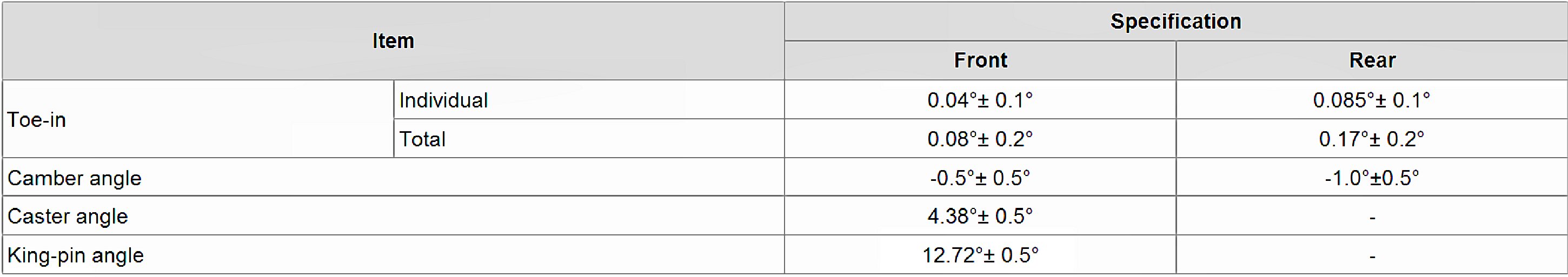 Wheel Alignment Specifications